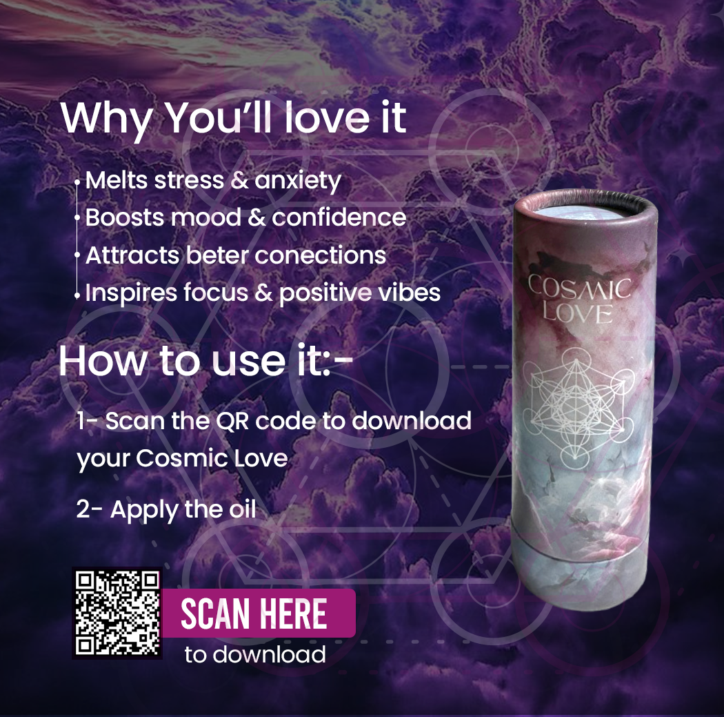 Cosmic Love Oil captures the pure essence of love in a bottle. A divine scent that opens your heart and captivates all in your presence. A magical blend of the world’s finest farm-to-bottle plants sourced with care from tranquil fields in Egypt (Jasmine and Neroli), Madagascar (Ylang Ylang), and France (Rose and Lavender), to name a few.